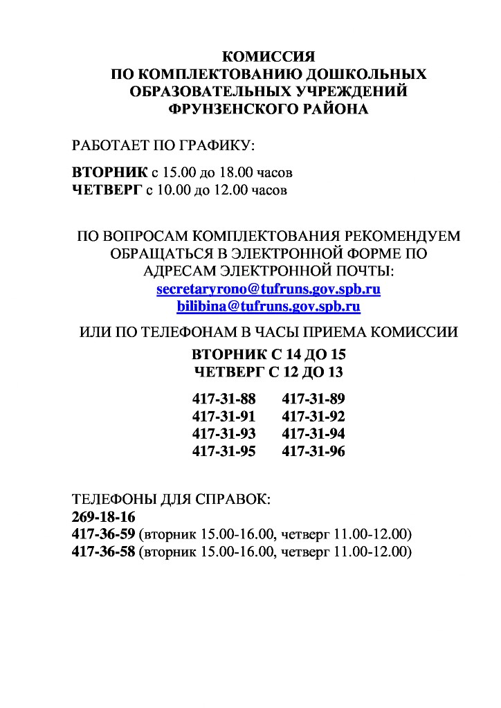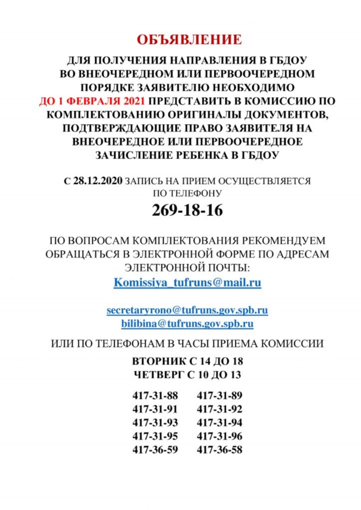 Памятка комиссии по комплектованию групп ДОУ на 2020 г.