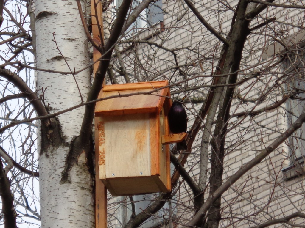 В новый домик прилетел скворуша |