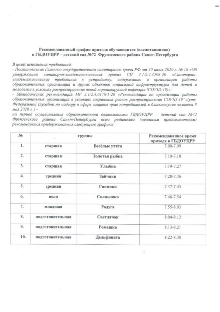 Прием воспитанников уже проходивших обучение в нашем саду начинается с 31 августа 2020 года (медицинские справки необходимо получить у участкового педиатра по месту жительства (справка действительна 3 дня)).